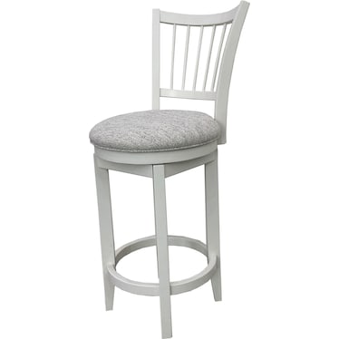 The barrel back bar stool is all about style and comfort. A luxurious plush seat is upholstered in a white faux leather, while a plush curved seat back provides added comfort. Finished with a versatile chrome, this piece is an easy addition to any kitchen, bar or dining area.